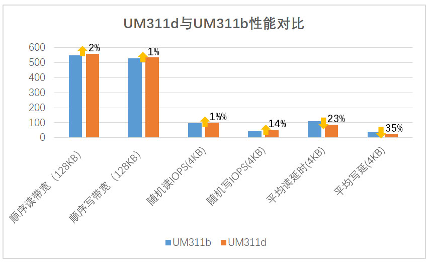 忆联UM311d支持SATA III接口,容量覆盖480GB至3.84TB,顺序读写速度高达560/535 MB/s,随机读写性能达99K/48K IOPS。相较UM311b,其随机IOPS最高提升14%,关键时延最大降低35%,能显著优化虚拟机、分布式存储及温冷数据池等企业场景的数据存取体验,更流畅、更可靠地释放既有存储架构潜力。
